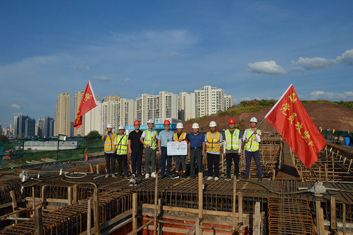 蟠龍大橋項(xiàng)目橋梁工程全長1376米,由南北引橋工程和主橋工程組成,其中引橋工程有九聯(lián)預(yù)應(yīng)力現(xiàn)澆箱梁(980米),主橋工程有一聯(lián)單索面三塔雙層鋼桁梁(396米),本次首聯(lián)現(xiàn)澆箱梁橋面寬16.5米、高度2米、混凝土用量1593方,施工采用盤扣式滿堂支架技術(shù)措施。據(jù)悉,考慮到本次混凝土澆筑方量大、體積大、砼標(biāo)號(hào)高、高溫氣候等技術(shù)因素及支模架危險(xiǎn)性較大工程等安全因素,臨時(shí)黨支部充分運(yùn)用學(xué)習(xí)交流、溝通協(xié)調(diào)機(jī)制,積極組織參建各方對(duì)支模架安全技術(shù)方案進(jìn)行了專家論證評(píng)審,確保施工安全可靠、技術(shù)可行,并提前到商品混凝土攪拌站開展溝通協(xié)調(diào),掌握原材料質(zhì)量及倉庫儲(chǔ)備數(shù)量,提前做好夜間值班分工、后勤保障服務(wù)工作,確保箱梁澆筑順利完成。