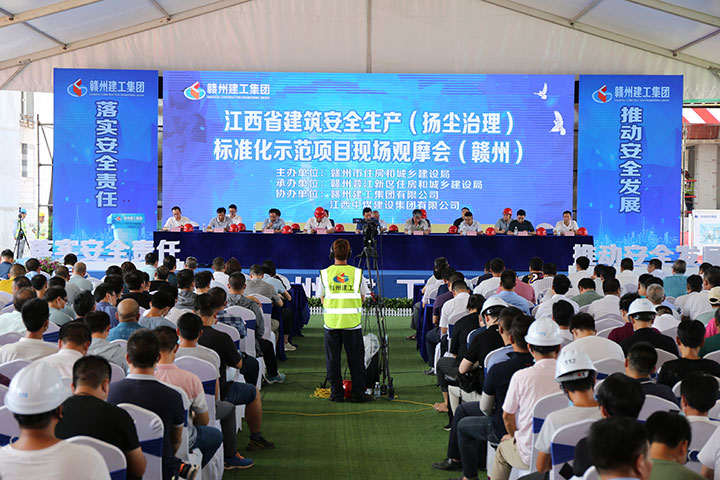日前,2021年江西省建筑施工安全生產(chǎn)(揚塵治理)標準化示范項目現(xiàn)場觀摩會(贛州)在贛州城投集團星洲萃苑(一期)項目工地成功舉辦,會議主題為“落實安全責任,推動安全發(fā)展”。市住建局、市應(yīng)急局、蓉江新區(qū)管委會、贛州城投集團有關(guān)領(lǐng)導(dǎo),以及來自各縣(市、區(qū))住建主管部門分管領(lǐng)導(dǎo)和安全監(jiān)督機構(gòu)負責人,市本級在建項目企業(yè)代表,新聞媒體記者等共計200余人走進項目施工現(xiàn)場,重點對星洲萃苑(一期)項目建筑施工安全生產(chǎn)標準化、綠色文明施工、智慧工地管理等方面進行了全方位的觀摩學(xué)習。