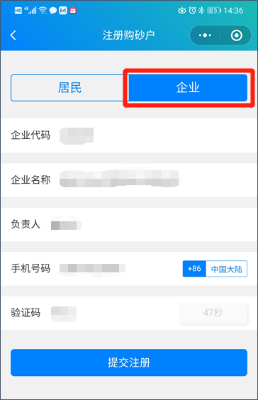 4. 選擇 “企業(yè)”注冊,并填寫相關信息。(企業(yè)代碼由贛州匯金砂業(yè)有限公司提供)