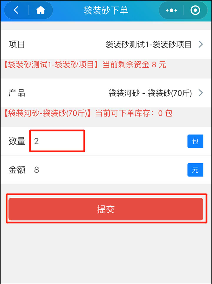 3.選擇“注冊用砂戶” 第五步:企業(yè)下單 1. 選擇“袋裝砂” 2.選擇“購砂申請”