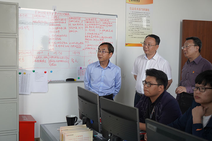 吳詩東一行先后到集團黨性教育體驗室、職工之家、匯金砂業(yè)智慧河砂運營調(diào)度中心機房、市綜合文化藝術(shù)中心、蟠龍大橋項目等調(diào)研指導(dǎo),詳細了解集團黨建工作、經(jīng)營業(yè)務(wù)及項目建設(shè)開展等情況。