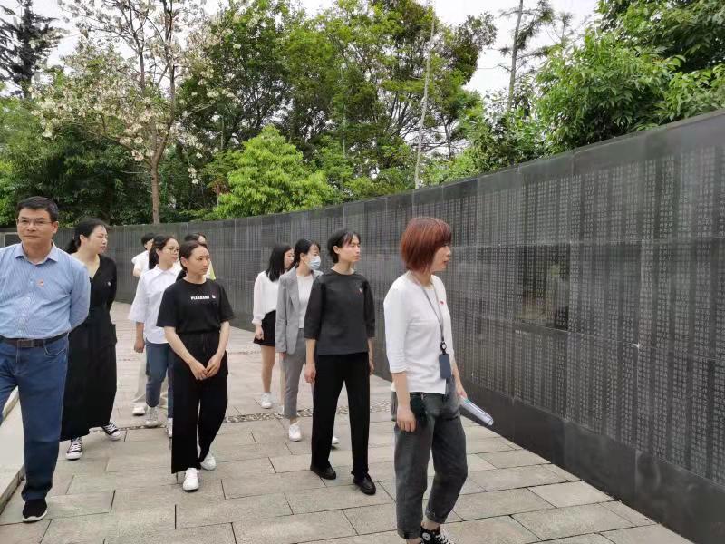 抵達(dá)贛州市革命烈士紀(jì)念館后,大家懷著崇敬之情,肅立在烈士紀(jì)念碑前,向烈士默哀三分鐘,緩步上前敬獻(xiàn)鮮花,行三鞠躬禮,繞行瞻仰了刻有約10.8萬(wàn)烈士名字的英名墻。