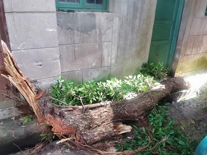 今年5月,我市大部分地區(qū)交替出現(xiàn)大風(fēng)、雷雨、暴雨等天氣,降雨量大且持續(xù)時(shí)間長(zhǎng)。5月18日,一場(chǎng)雷雨過(guò)后,贛州市機(jī)關(guān)事務(wù)管理中心轄區(qū)老市委大院內(nèi),一顆200多年的古榕樹(shù)樹(shù)枝斷裂,懸掛于院內(nèi)一屋頂之上。院內(nèi)居民憂心忡忡,擔(dān)心這顆“定時(shí)炸彈”,隨時(shí)都可能掉下,砸毀房屋,危及院內(nèi)居民的人身安全。