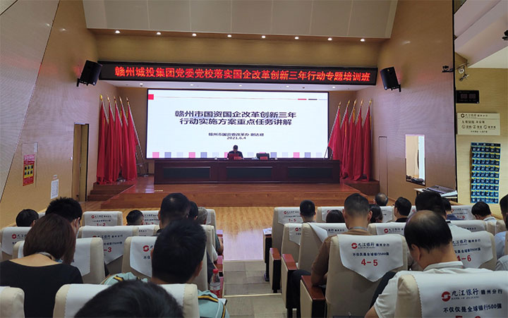 6月23日下午,贛州城投集團黨委黨校舉辦落實國企改革創(chuàng)新三年行動專題培訓(xùn)班,集團黨委委員、總工程師王遠(yuǎn)平,黨委委員、紀(jì)委書記曾富有出席,市國資委宣教科科長謝達(dá)迎應(yīng)邀作專題輔導(dǎo),集團全體中層管理人員,相關(guān)部門、子公司人員共計70余人參加培訓(xùn)。