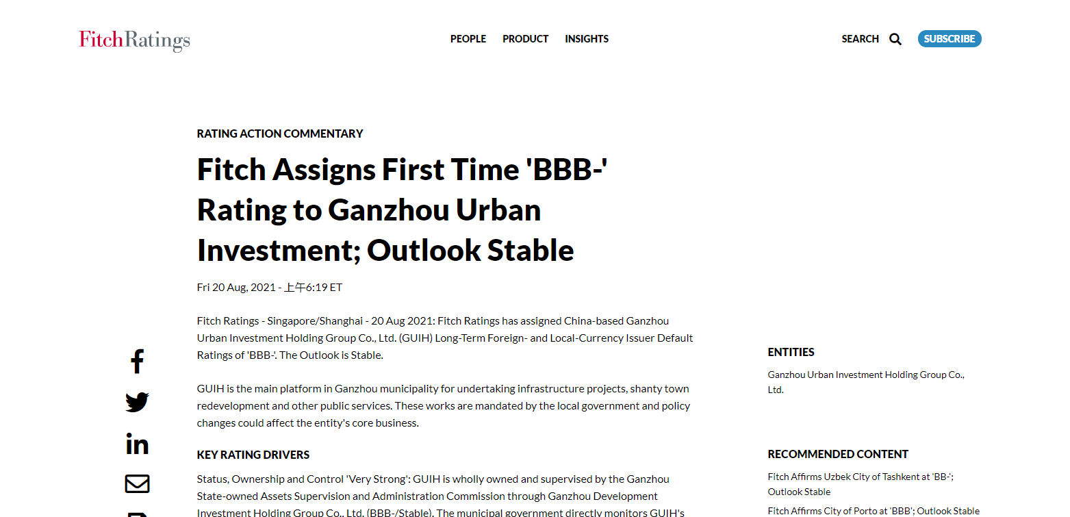 贛州城投集團(tuán)首次國(guó)際信用評(píng)級(jí)喜獲BBB-