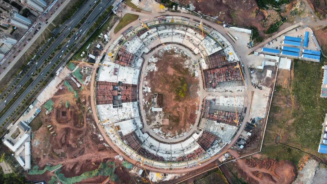 在全民健身中心項(xiàng)目,綜合體育場混凝土結(jié)構(gòu)工程累計(jì)完成58%。