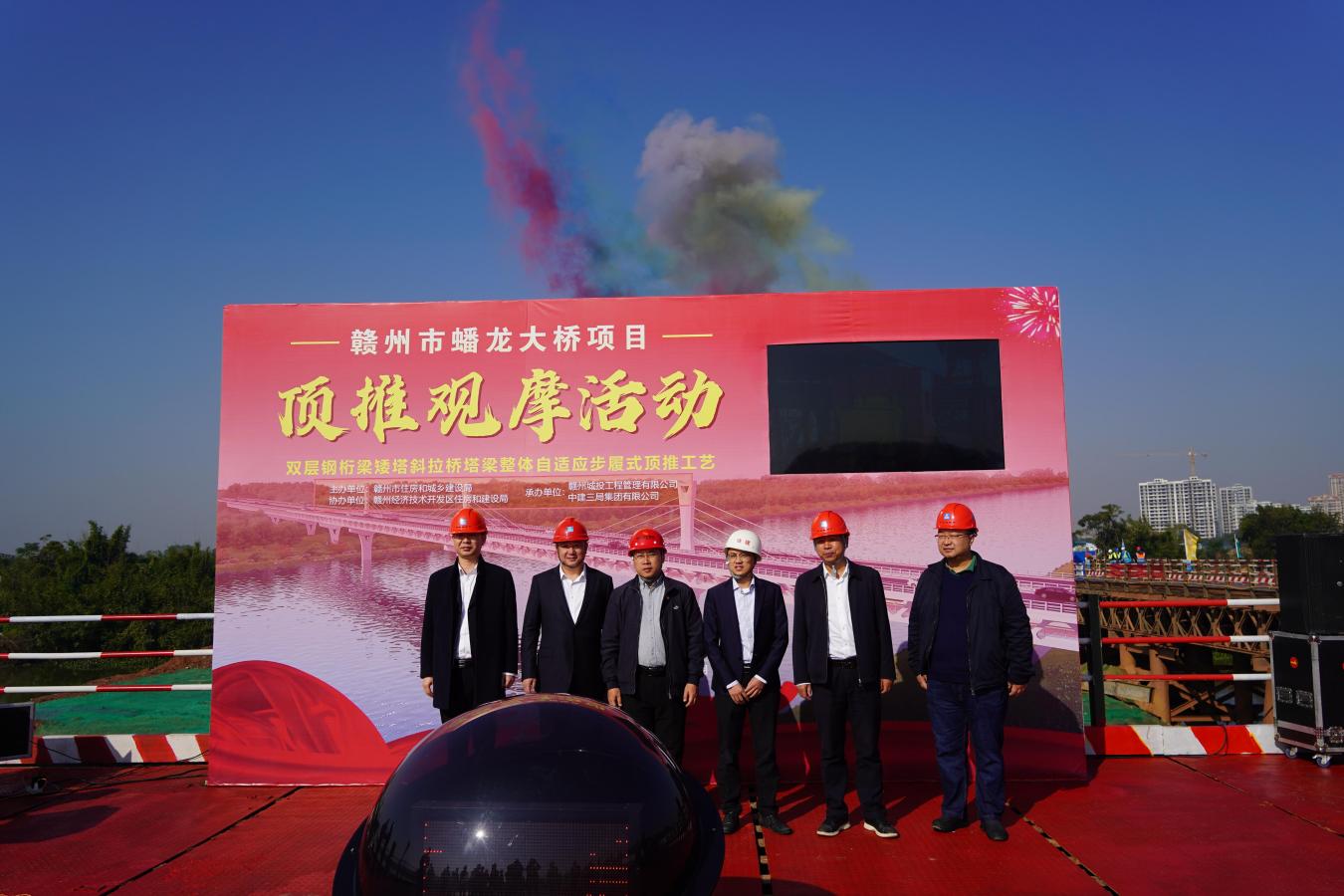 12月6日,贛州市蟠龍大橋項目主橋鋼結(jié)構(gòu)首次頂推啟動,為主橋的順利推進打下堅實基礎,標志著該項目取得了全市重點項目建設百日攻堅活動任務目標的節(jié)點性勝利。贛州經(jīng)濟技術(shù)開發(fā)區(qū)住房和建設局,贛州城投工程管理公司、中建三局總承包公司等參建各單位代表共計60余人參加頂推啟動活動。